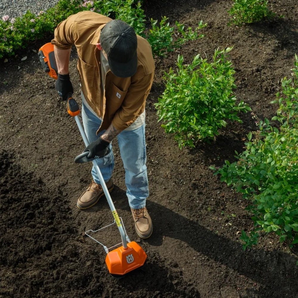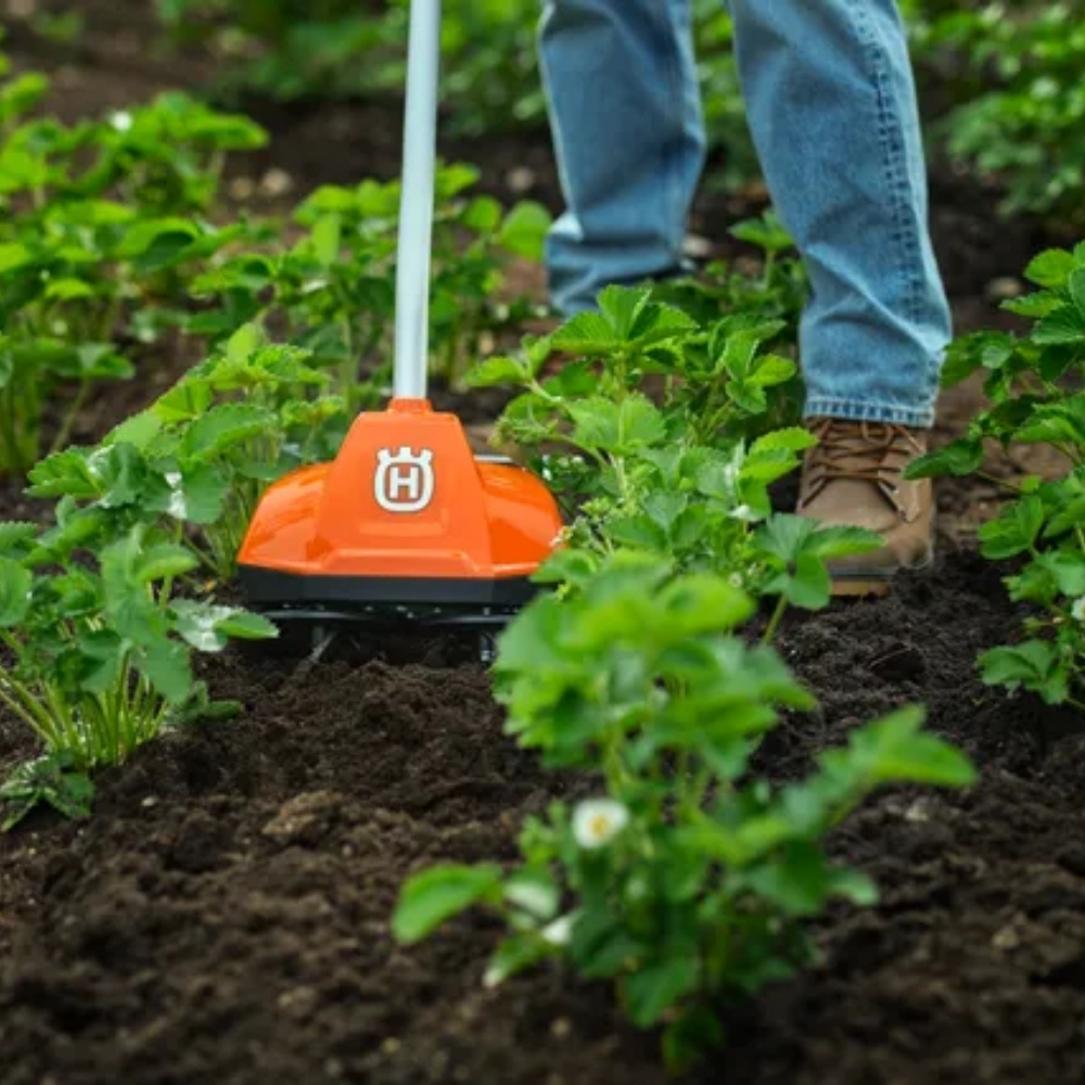 Husqvarna battery-powered cultivator TH 125i delivers precise and gentle cultivation for nutrient-rich soil and improved biodiversity. Its compact design makes it perfect for smaller gardens, and the counter-rotating spiral tines provide excellent control even in tight spaces while ensuring continuous operation regardless of soil conditions. Their slow rotation is also gentler on roots and wildlife compared to traditional cultivators. The low weight and adjustable front handle enable easy and ergonomic handling with minimal strain on the body. An intuitive keypad with start and stop button simplifies operation. The TH 125i is part of Husqvarna’s 36 V BLi-X system, meaning one battery can be used across multiple tools.